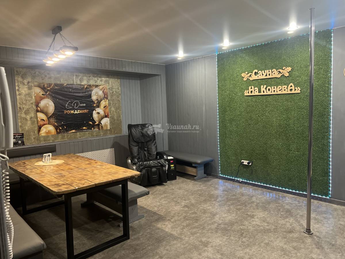 Сауна «На Конева» приглашает в гости всех любителей качественного парного досуга, предлагая комфортные условия для здорового и напыщенного времяпровождения в компании близких и дорогих людей. Круглосуточный режим работы парного заведения позволит отправиться на отдых в любое удобное время, а традиционная финская сауна, в которой, кстати, можно попариться под веник подарит только положительные эмоции и пользу для здоровья.